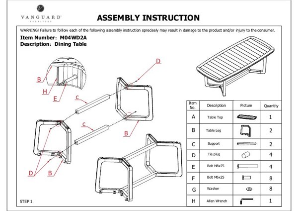 Assembly Instructions: P682T Form Rectangular Dining Table