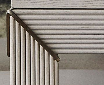 The Parkhurst dining table balances reeding details with angled metal accents in White Bronze.