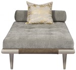 SHOWN: 9060-CL. Fabric: Kodiak Cement; contrast leather welt and wraps in Highlands Earth (no longer available). Bolster in Kodiak Cement; 20" throw pillows in Shimmy Gold. Finish: Stone.